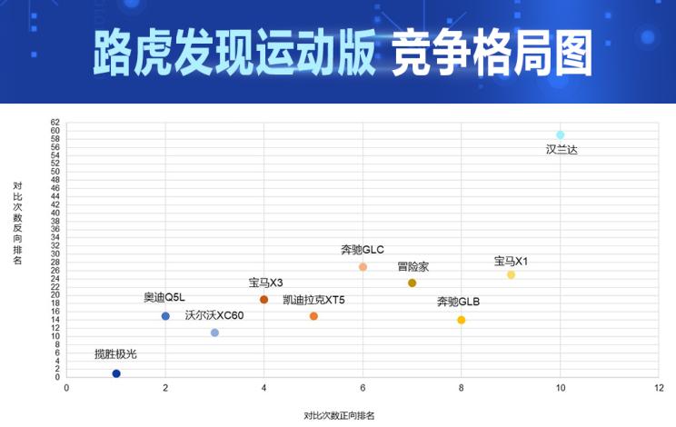 本站大数据中不同车系间的相互对比次数能够很好反映用户心目中车系的竞争关系。根据本站上的车型对比数据,与发现运动版进行对比的车系中,对比次数位列前三的竞品分别为揽胜极光、奥迪Q5L、沃尔沃XC60,我们将其视作发现运动版的核心竞品。可以看出,对发现运动版来说,自家的揽胜极光对其用户的争夺最为激烈。除揽胜极光外,奥迪Q5L也是一大竞品之一。