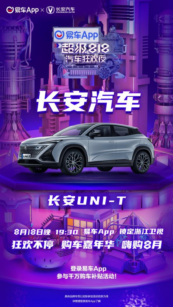 8月18日,易车与浙江卫视联合举办的“超级818汽车狂欢夜”即将盛大开幕。这场跨界晚会集合了顶流明星、顶级车企,是一场集全行业、全场景、全互动合作于一体的汽车数字营销大事件。在“易车超级818汽车狂欢夜”上,明星车型2022款UNI-T将会亮相晚会的车型超级秀环节。