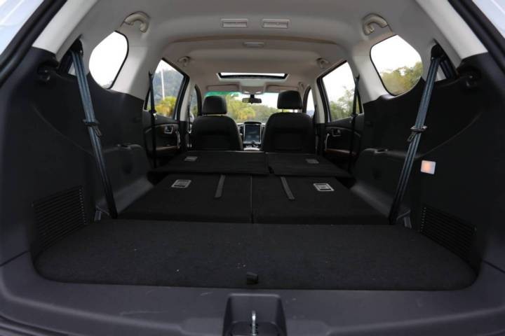 另外值得一提的是,斯威X7后备功能比较完善,第三排座椅可以三级调节,这样空间的灵活度就提升了。第二排座椅还可一键翻起,方便后排乘客上下车,这一点算是十分友好了。说到装货,斯威X7后备箱最大容积1920L,座椅可以全平放倒,加上尾门门槛设计离地面较低,上下装卸货物比较省时省力。