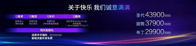 如果说QQ冰淇淋的性价比是第一层惊喜,ta带来的快乐和爱是第二层惊喜,那么发布会现场,揭晓的4+1上市权益,可以称得上是第三层惊喜了:“Q易贷”简单省心、审核快速,帮助年轻人减轻购车压力;“Q智控”终身免费升级,提升出行智能体验;“Q乐行”终身免费检查、3年内免费救援,帮助用户免去后顾之忧;“Q随用”电池质保8年或15万公里,整车质保3年或10万公里,续航每位用户的智驾潮趣。更有快乐启航礼,为前50,000名用户送出交强险、所有用户免基础流量费等福利,可谓业界良心。