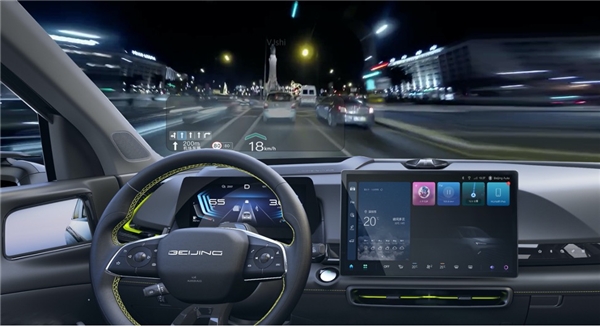 除此之外,它还是同级首款配备电子外后视镜的量产车型,不仅比传统后视镜多3倍视野,有效减少视野盲区,还可以在雨天、雾天等场景下,为用户提供更优的视野,确保行车安全。并且,60英寸超大画面的AR-HUD也是同级之最,它能在前风挡上投射仪表、实景导航、辅助驾驶等信息等功能,还能通过手机投屏,让用户无论身处何地都能舒适惬意的坐在车里玩游戏、看电影。