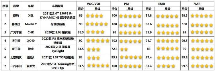中国汽车健康指数(C-AHI)2021年第三批车型测评结果 捷豹XEL成绩优秀