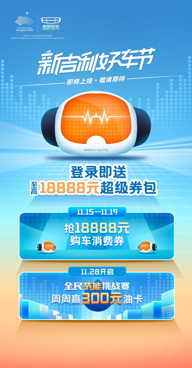 11月15日至12月31日,用户在微信搜索吉利福利小程序,登录即可领取至高18888元超级券包!11月15-19日,每天11:11准点派发至高18888元购车消费券,想要购车的朋友们不要错过。11月28日吉利还将开启全民节能挑战赛,每周排名靠前用户可赢得价值300元油卡!