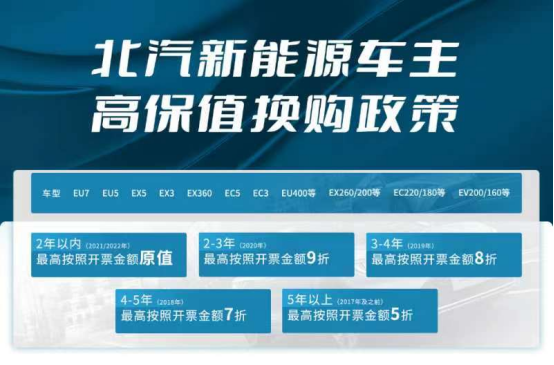 作为纯电新能源领域的先行者,在提升纯电动汽车保值率这条路上,北汽新能源一直在努力。2016年,北汽新能源便发起“换然E新”活动,大手笔启动1.8亿元换新基金回馈客户,首开行业先河推出纯电动汽车二手车置换政策。多年来,通过对置换车主的补贴政策持续升级,北汽新能源让越来越多的老用户、燃油车用户以低门槛持续享受纯电汽车的“红利”,树立了纯电动汽车二手置换的政策标杆。