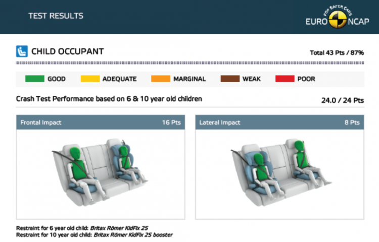 在针对6至10岁儿童的碰撞试验中,无论是正面碰撞还是侧向碰撞,拿铁PHEV车型对儿童假人的所有身体关键部位都起到了很好的保护作用,均取得了满分成绩。