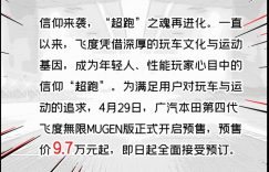 [本站 资讯] 4月29日,飞度无限MUGEN版车型正式开启预售,预售价为9.7万元起。新车由本田…
