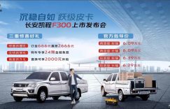 [本站 新车上市] 4月13日,长安凯程F300上市,该车为一款入门级皮卡,该车推出标轴/长轴共四…