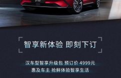 [本站 资讯] 日前,我们从比亚迪官方了解到,其下中大型轿车――汉将推出推出智享升级包,…
