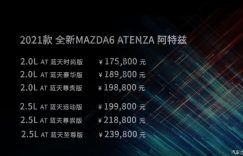 [本站 新车上市]2021年3月12日晚,新款马自达阿特兹正式上市,共推出6款车型,售价区间为17.…
