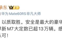 [本站 资讯]日前,华为智能汽车解决方案BU董事长余承东在社交媒体上表示,发布4个月,新款问界M7大…