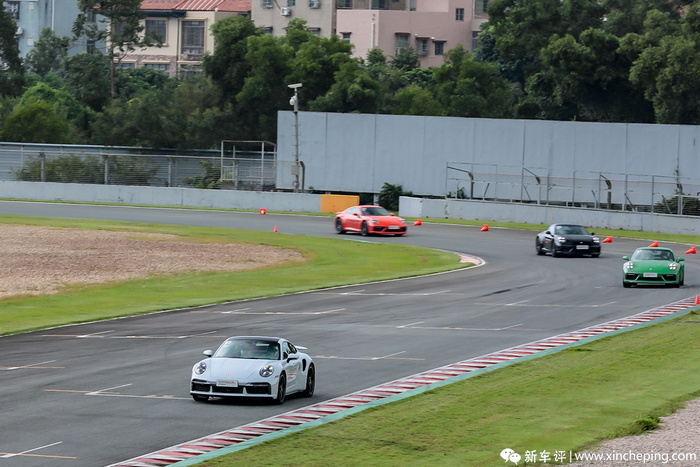 像是在珠海这样的典型“Stop & Go”高速赛道,虽说组合弯较少,操控乐趣不强,但90度弯与回头弯较多,都是能很好展现911优势的工况,当天感谢同组老师较高(起码不输我)的驾驶水平,教练也放心放开跑了,所以即便是列队驾驶,也能七七八八地逼及车辆极限,我也得以在实战中再次温故知新911独步天下的循迹刹车入弯技巧。