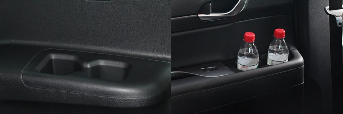 说到顺手,帕里斯帝由于采用了电子换挡方式,所以中央下方可以做镂空设计,加上大尺寸车身提供的“放肆横向宽度”,你能在任何座位附近上找到杯架(全车16个杯架)。