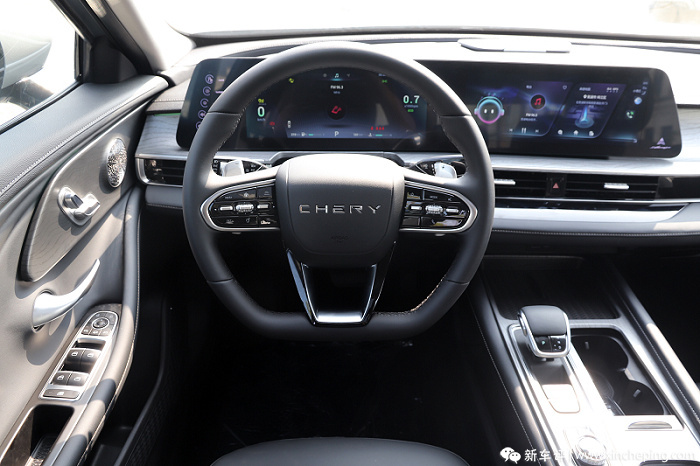 而在车厢部分,这次艾瑞泽8准备了三种内饰颜色供消费者选择。我们这次试的这台是一个黑色内饰版本。艾8这个车厢初步体验下来,给我的印象还不错,人机工学设计得挺好,座椅舒适度不错,前边的双联屏设计看上去比较顺眼,而且屏幕的清晰度、菜单铺排等都没什么问题。