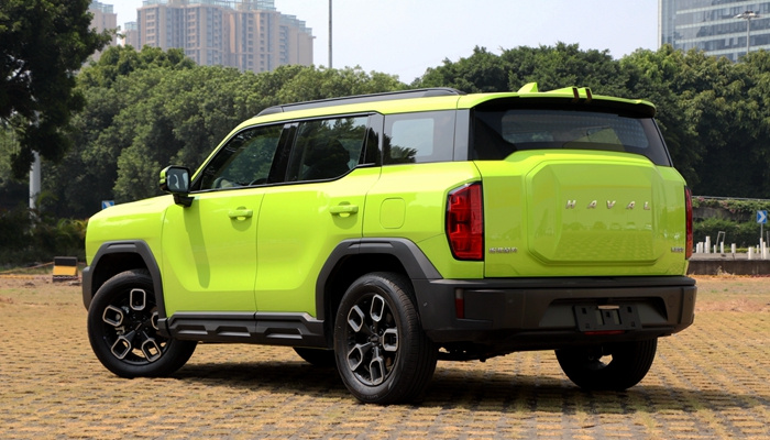 尾巴部分,C柱方向的玻璃和大尺寸后挡风通过黑色装饰连成一体。靠着这种扁平化设计,从45度角看过去,这台酷狗的上半部分宛如一个玻璃盖子。再加上轻微熏黑的尾灯,其精细度和时尚感明显更胜一筹。