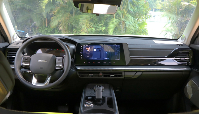 内饰方面没什么特别的地方,悬浮式的中控屏幕配上液晶仪表,通过一前一后形成层次感。比较有意思的是,酷狗用上了高端品牌WEY才有的机甲风换挡杆。这可是大狗都没有的待遇(旋钮换挡)。