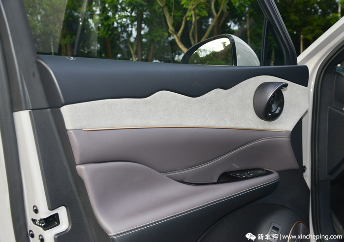 内侧门板的门把手使用上鹦鹉螺的造型,空调出风口也设置成“回”字形的海面漩涡,非常醒目,并且门板上使用上海浪状纹理设计,既增强了车型的辨识度,又加强了门板的层次感,类似的设计还能见之于中控面板上,这样的设计能减少视觉上的沉闷。