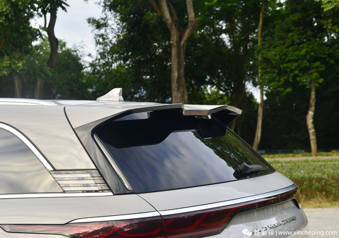 车尾整体风格往比亚迪的家族化风格靠拢,并且使用上时髦的贯穿式尾灯,点亮后辨识度很高,同时尾灯的“眼角”往外延伸,与前大灯的设计形成呼应,上方有一条异形尾翼,能略微增强一下车尾的运动感。