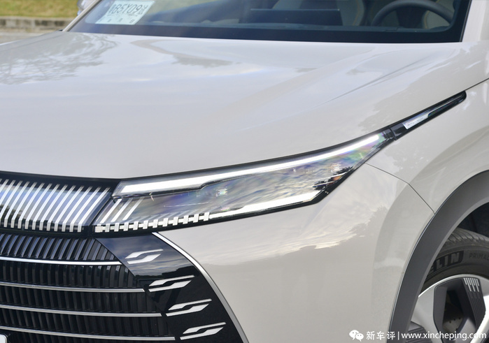 前大灯的造型很修长,后半段的“眼角”直接延伸到翼子板处,非常夸张。
