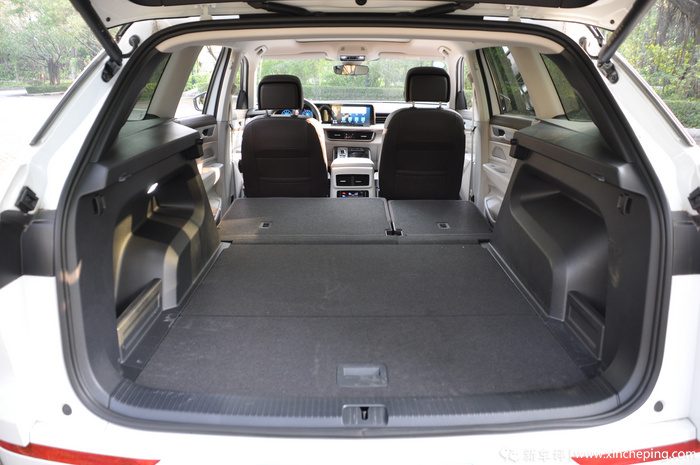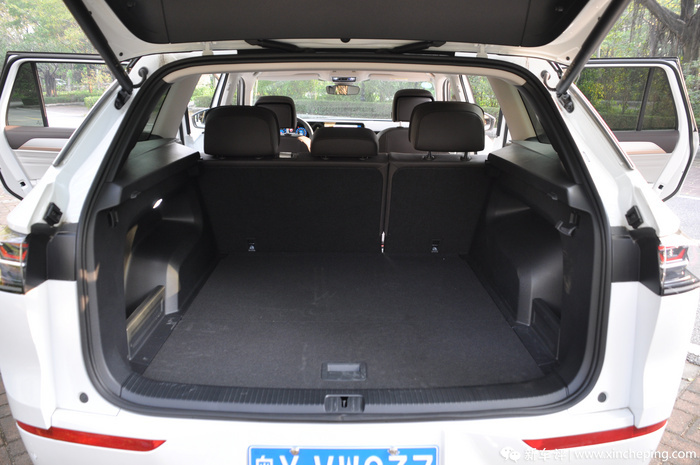另外一个惊喜是尾箱空间的延展性,先说说这台揽巡的车身尺寸,长宽高分别是4936/2015/1756mm,轴距是2980mm,较大的车身尺寸令揽巡有着非常不错的车内空间以及尾箱空间。另外,揽巡的后排座椅还具备了变形机构,翻折后能够与尾箱地台形成全平的空间,既方便货物搬运,还能充当露营床车。