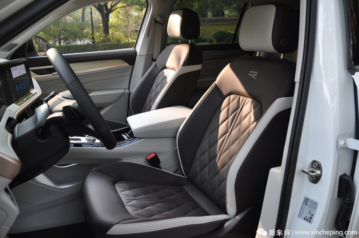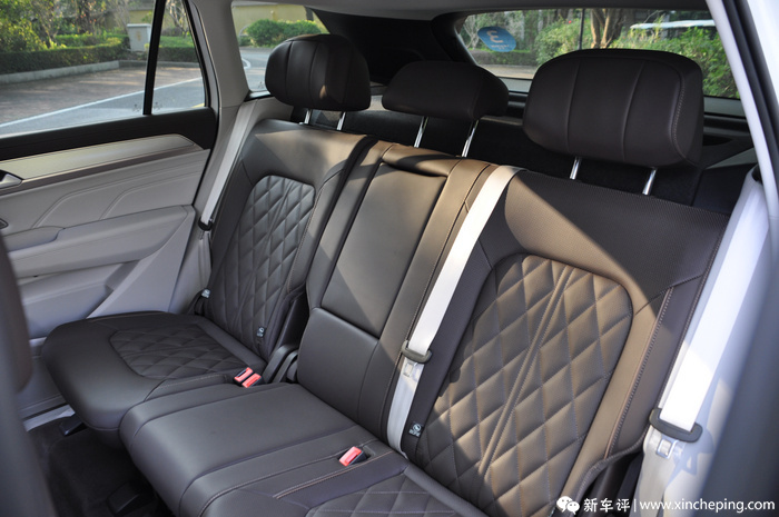 揽巡座椅采用了菱形格纹的缝线装饰,R-Line套件版本车型还会在方向盘底部,以及前排座椅靠背缝上“R”标志。前排座椅填充物厚实,但是后排座椅要兼顾放倒后的变形,所以坐垫和靠背相对来说比较薄,坐起来能明显感觉坐垫较硬。