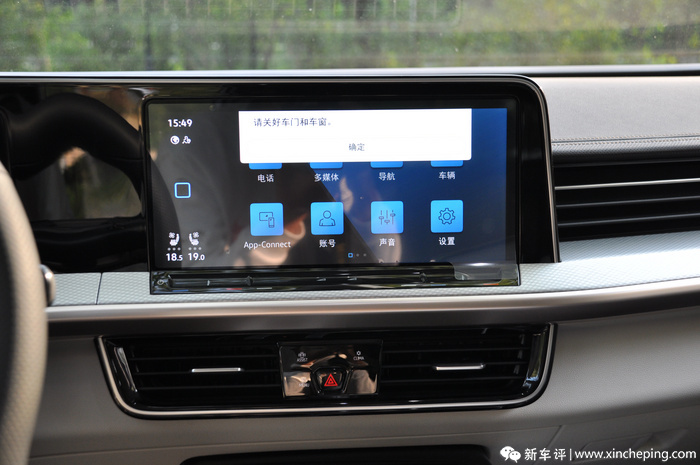 在坐进车厢可以发现,揽巡的内饰设计更年轻化了。首先是配色,这次试驾的车型内饰是白棕配色,另外还有一款是黑灰配色。但无论是哪个颜色,整套内饰都是由大面积的浅色皮料所覆盖,少了一份以前大众的老气。